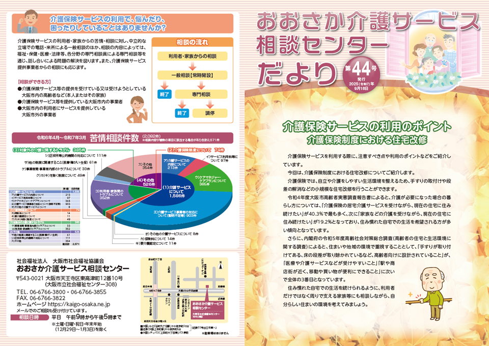 年に2回、介護保険や福祉に関する様々な情報を掲載した広報誌『おおさか介護サービス相談センターだより』を発行しています。